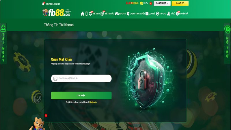 Nếu không may quên mật khẩu anh em cược thủ hãy nhấp vào liên kết “Quên Mật Khẩu” trên mục đăng nhập. Hệ thống sẽ yêu cầu bạn nhập địa chỉ email đã đăng ký để nhận mã xác nhận. Sau khi nhận được mã, người chơi có thể tạo mật khẩu mới.